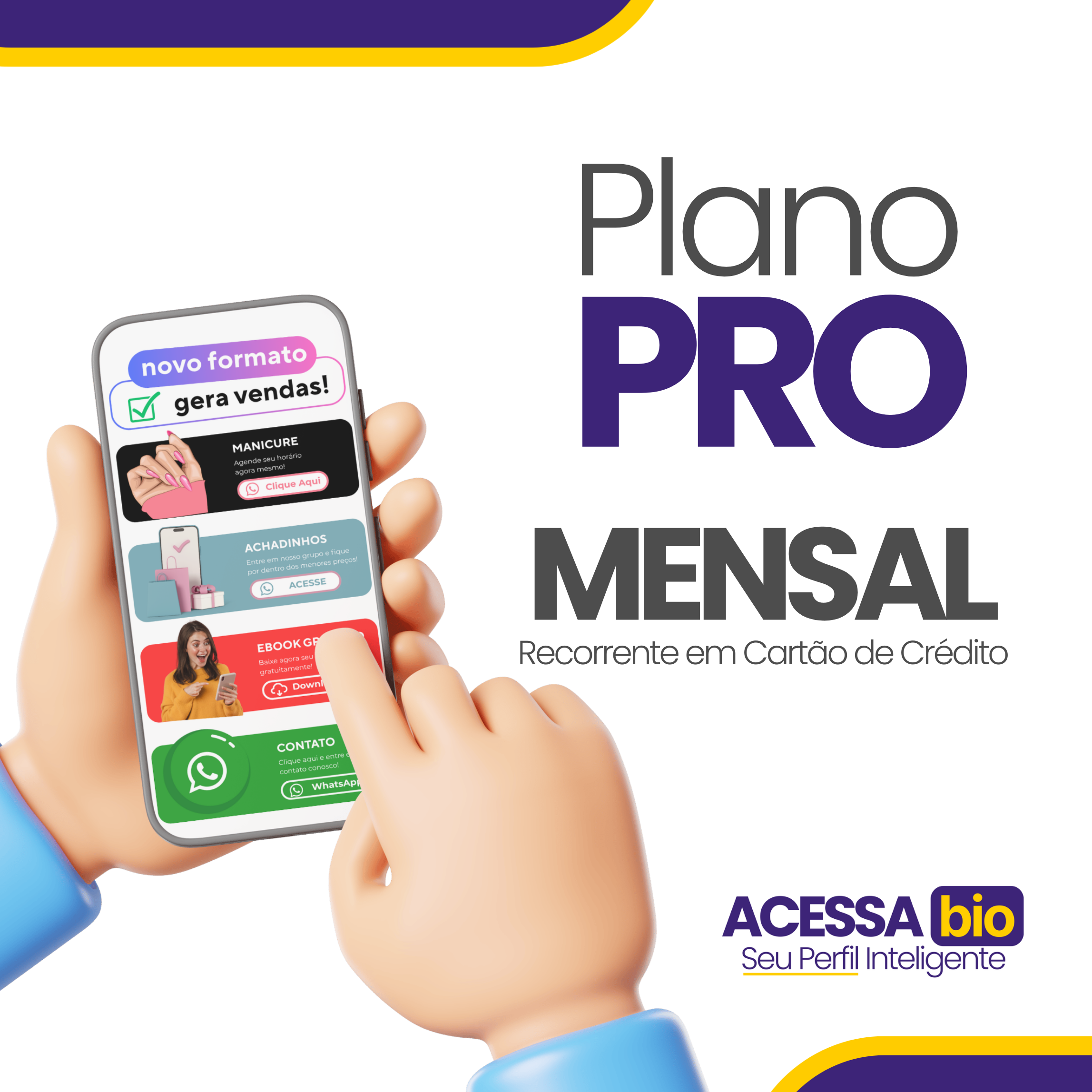 O Plano PRO Mensal é a escolha ideal para quem busca profissionalismo imediato e ferramentas de alta conversão com a praticidade do pagamento recorrente. Você garante acesso a todos os recursos premium do Perfil Inteligente e conta com nosso suporte especializado para manter sua presença digital em alto nível, sem a necessidade de fidelidade anual.